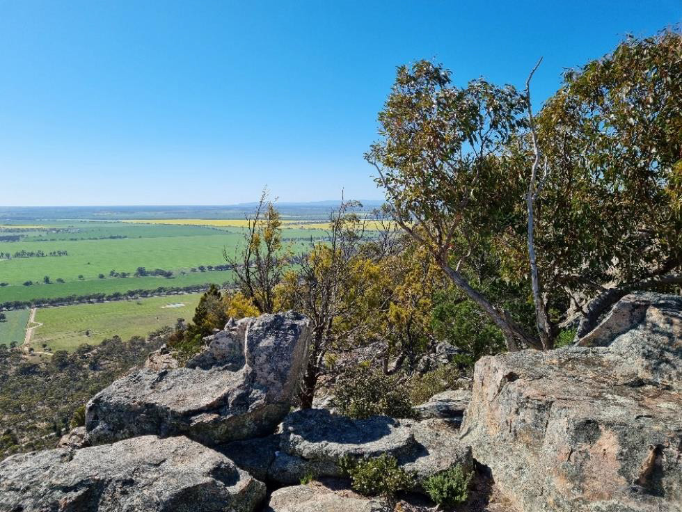 We took the asphalt road to the summit where there were views to The Grampians and the Wimmera Plains. There was a wide variety of plants growing out of the rocks.