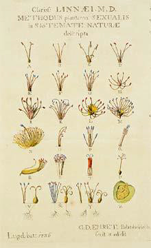 Recognised as the father of modern taxonomy, Carl von Linne (Linnaeus) published the first of his works in 1737. Systema Naturae detailed his concept of sexual classification based on floral structure, as depicted in the illustration (below). Literally, the System of Nature, through three kingdoms of nature, according to classes, orders, genera and species, with characters, differences, synonyms, places. (Wikipedia).