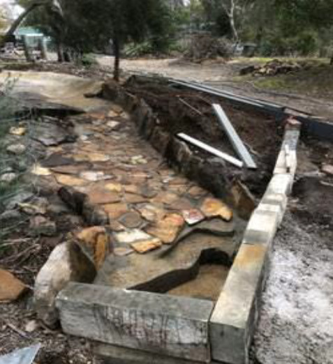 This garden belongs to Glenda and Greg Lewin who commenced planting the garden in 1996. The iconic Australian-style house was built in 2001 and the garden design reflects this. It features natural stone and steel with sculptural features. Plantings are of Western Australian and Grampians indigenous flora.